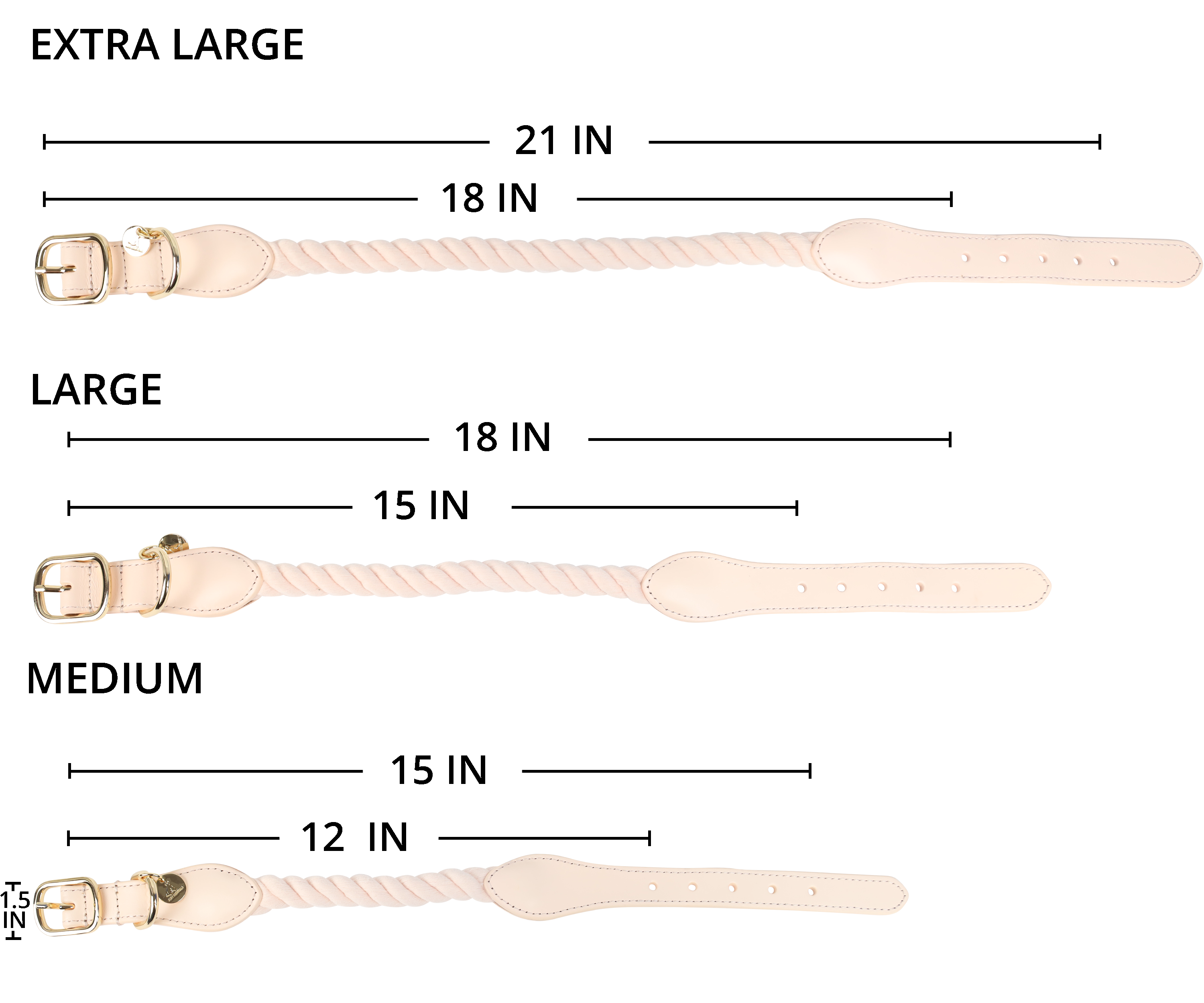 To ensure the best fit, measure the thickest part of your dog’s neck and refer to our sizing chart: