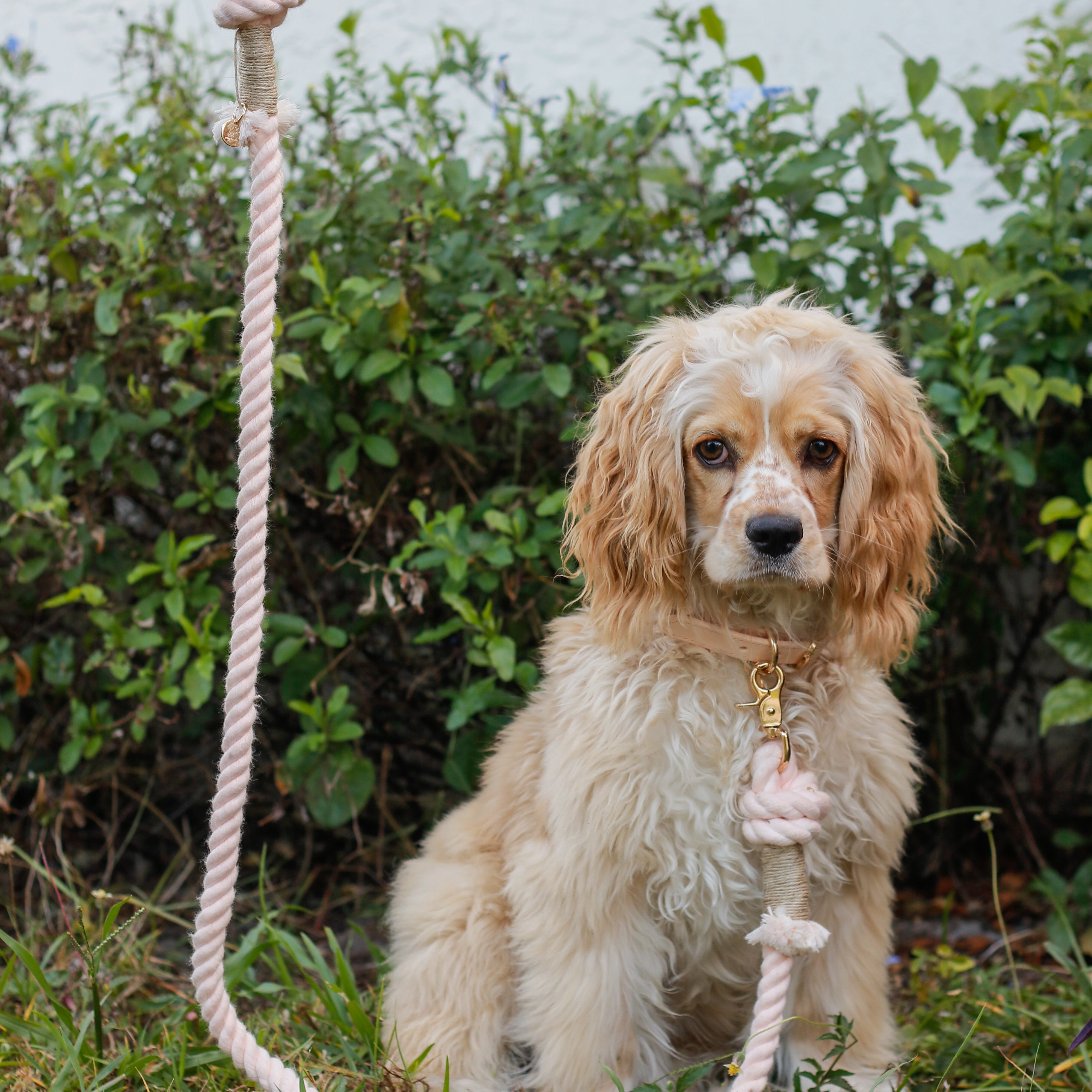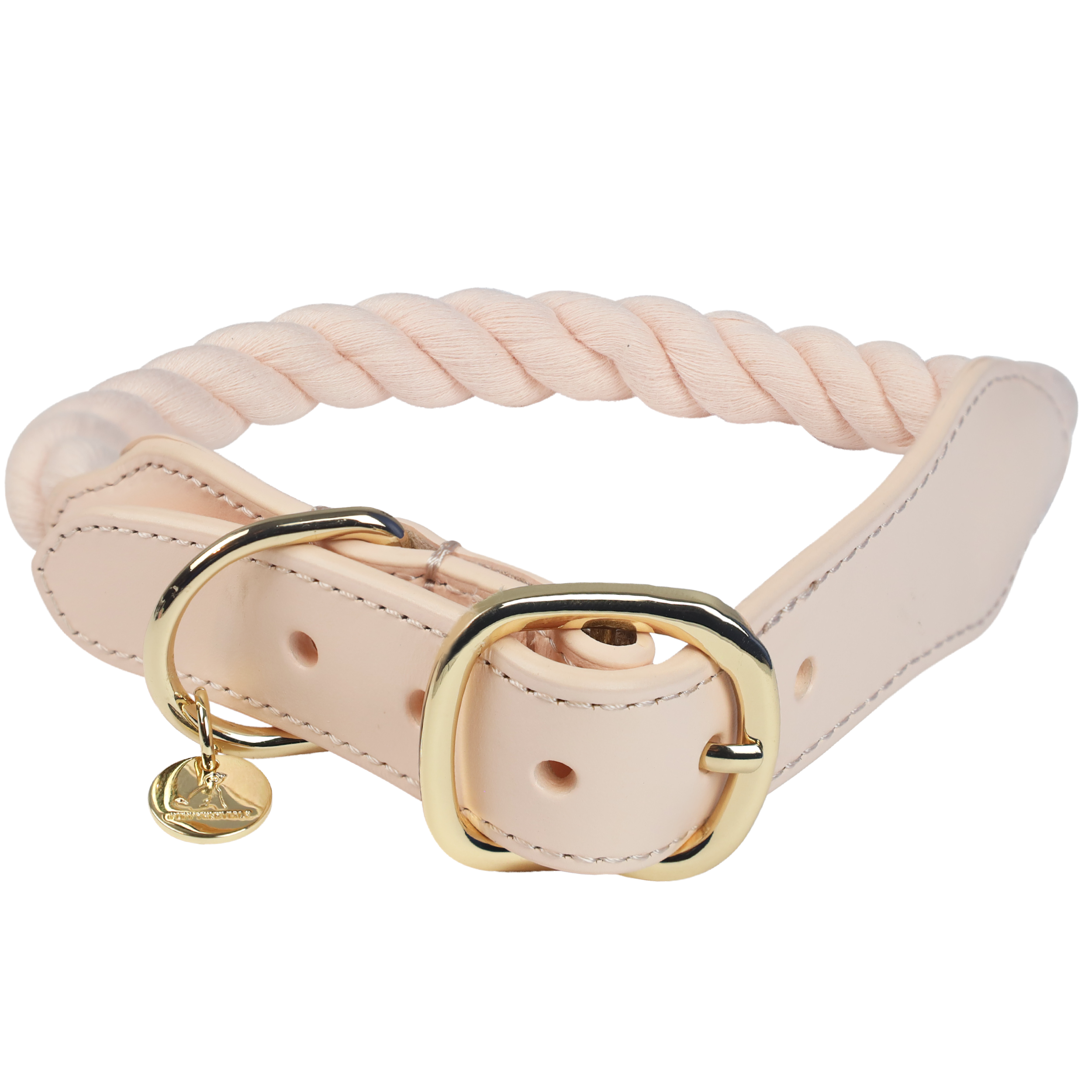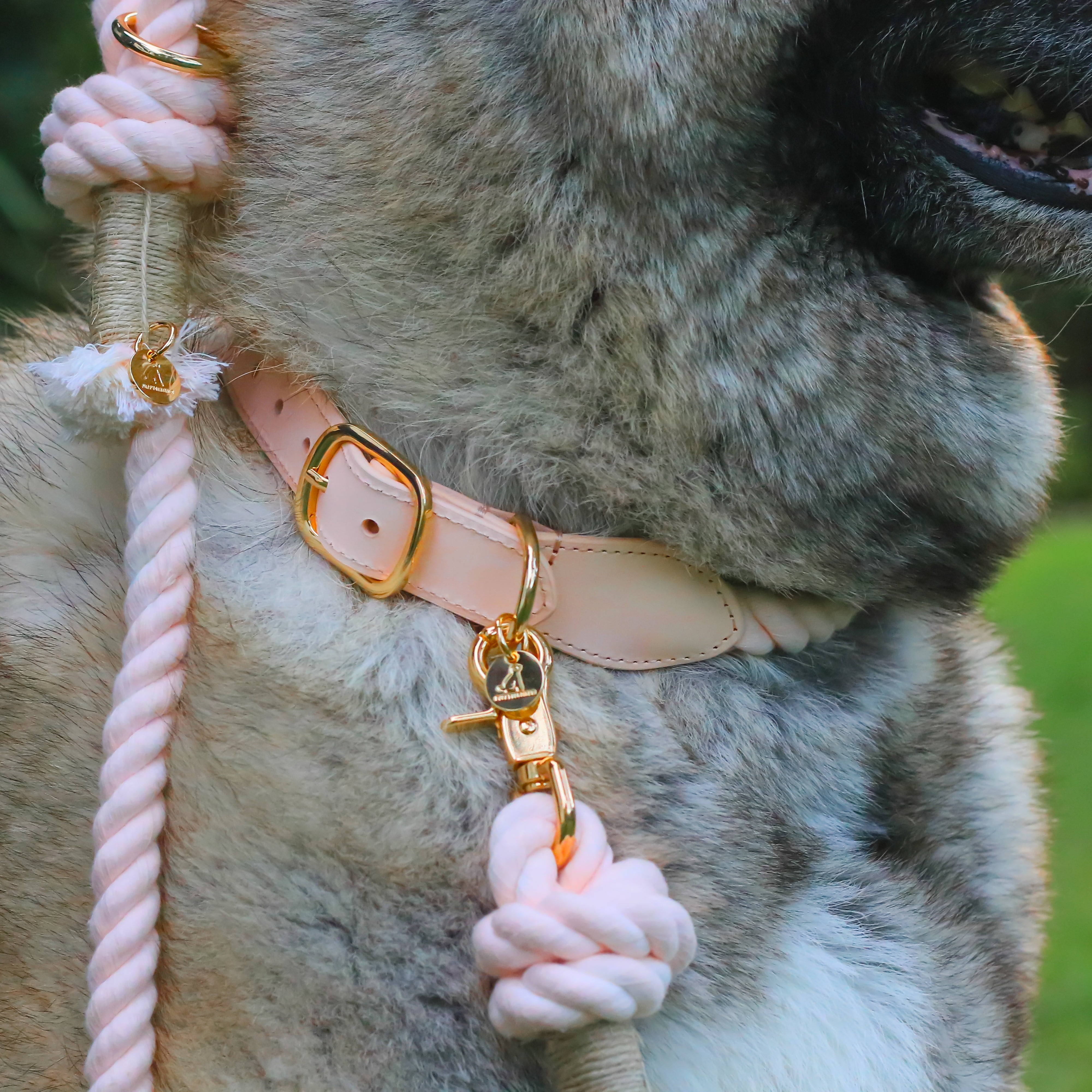 Our Light Pink Rope Dog Collar is handcrafted from natural cotton rope and finished with genuine leather and elegant gold-tone hardware. Designed to feel as good as it looks, this collar delivers everyday comfort with a polished, timeless aesthetic.