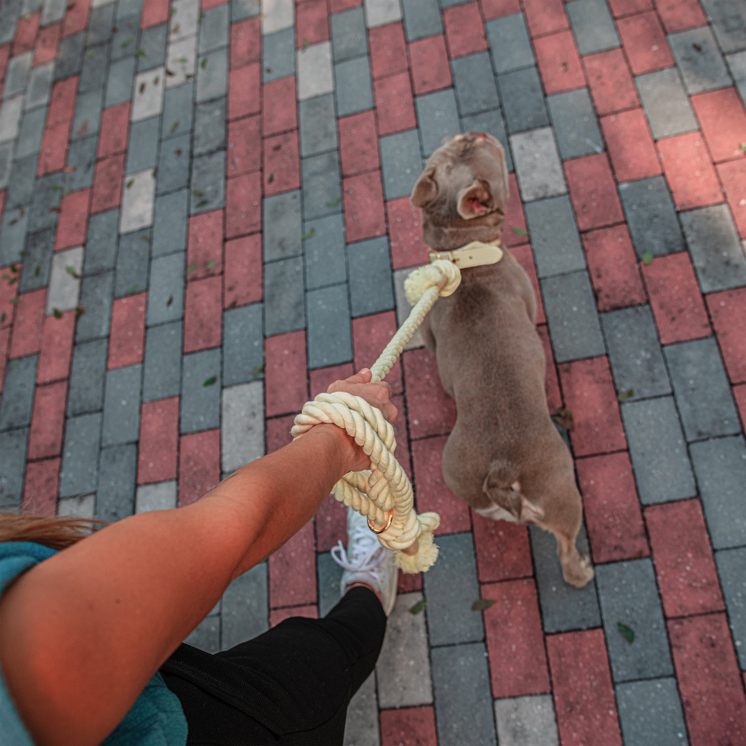 This isn't mass-market pet gear. Each cotton rope dog leash is hand-dyed in carefully controlled small batches, creating a warm creamy white tone that complements any aesthetic - from modern minimalist to classic elegance.