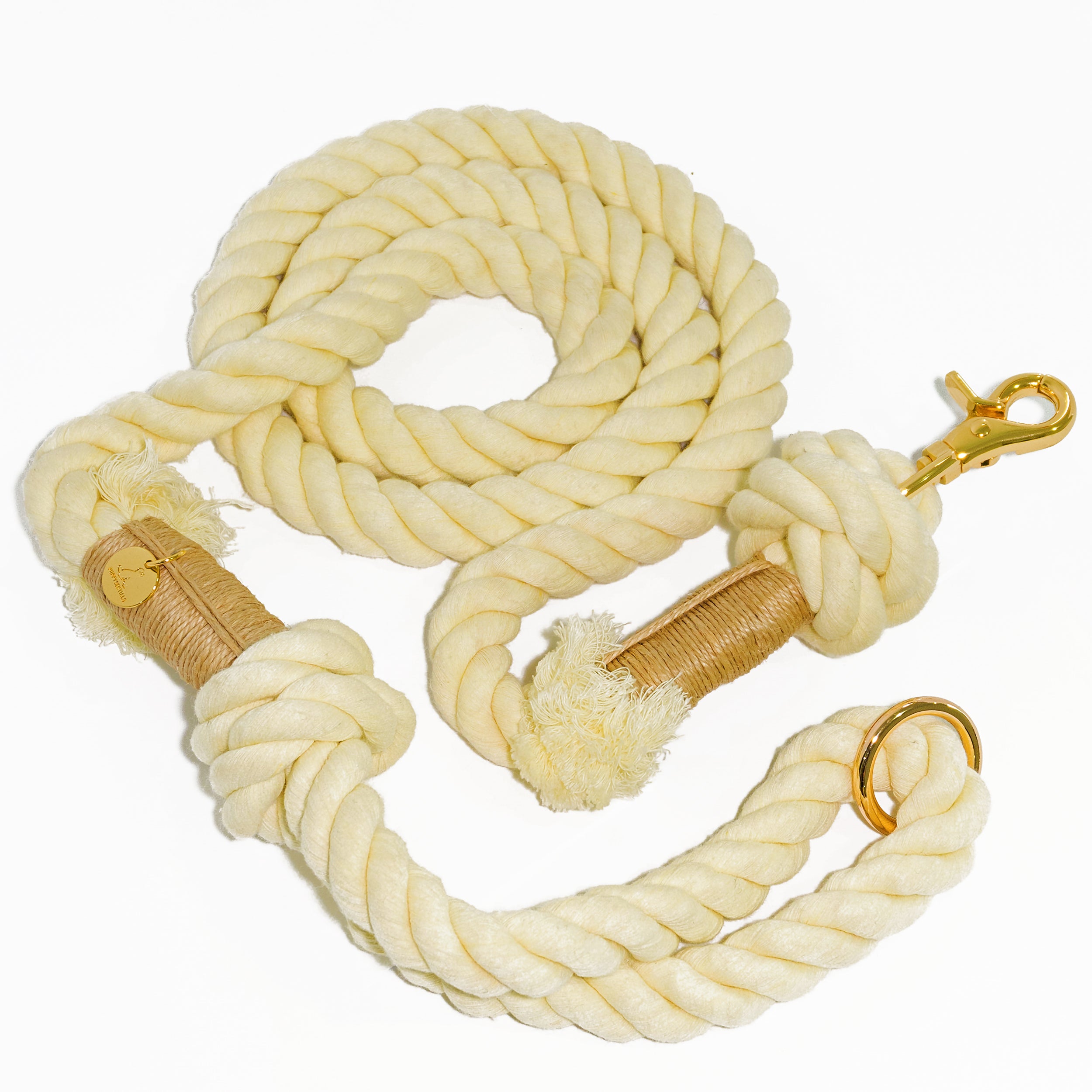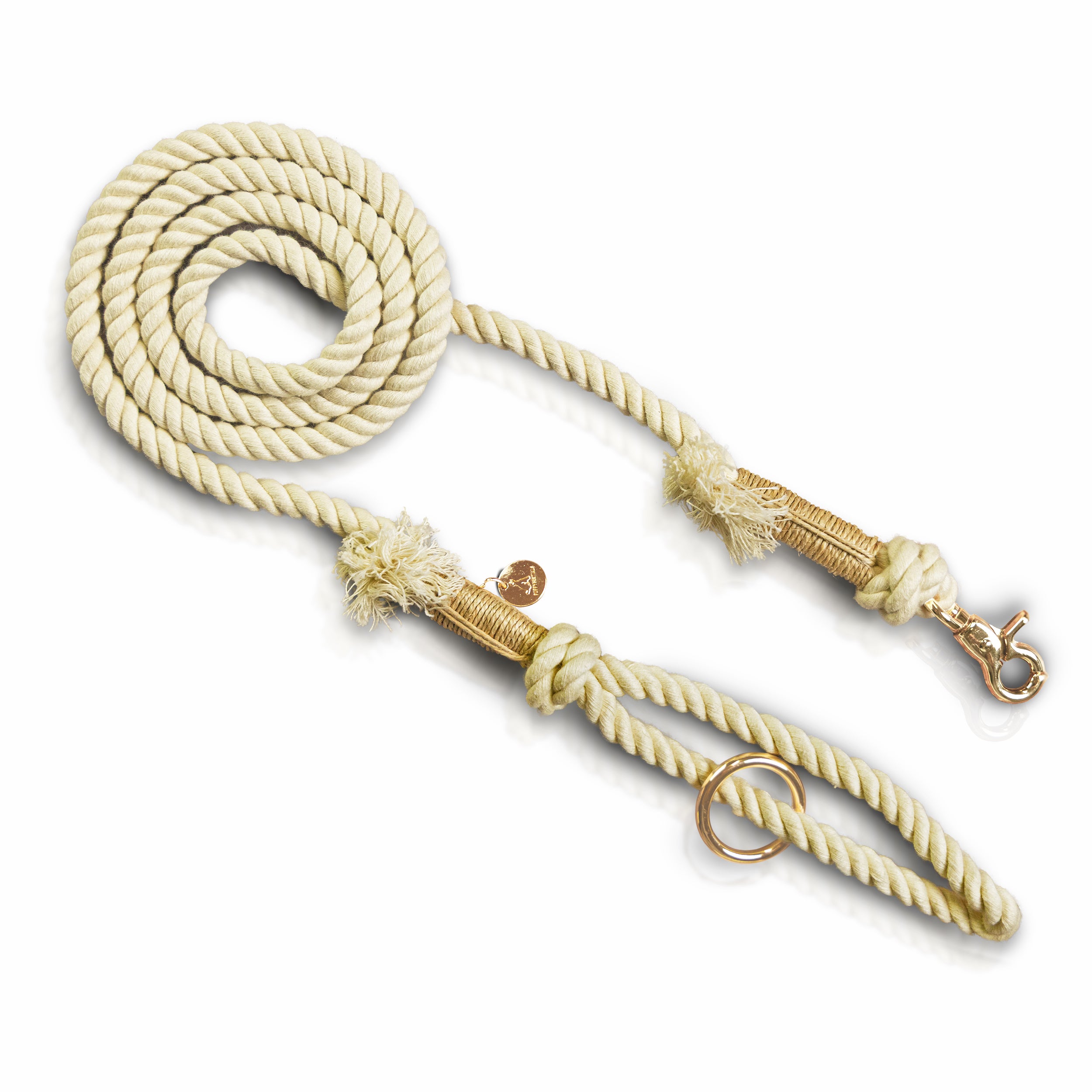 Unlike mass-produced leashes, each is hand-dyed in small batches to achieve a warm, creamy tone rather than using harmful chemicals to achieve a stark white. The result is a sophisticated neutral that feels intentional, not generic.  Less use of chemicals means the cotton rope dog leash is healthier for you and your pet and better for the planet.  If your pet has sensitive skin, be sure to consider our matching cream rope dog collar.  The cream rope dog leash and collar set is a stunning combination - elegantly neutral on every dog.